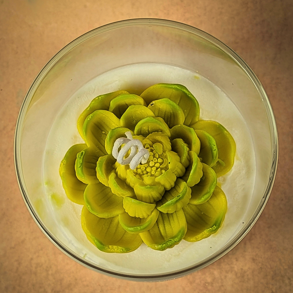 Handcrafted Design: Intricately sculpted wax flower embedded in the candle